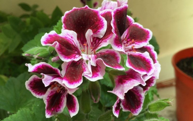 La aplicación posterior a fines de la primavera de 5 gramos de fertilizante granulado por planta prolonga el período de floración del malvón pensamiento. Se riega cada tres días evitando mojar el follaje y las flores.